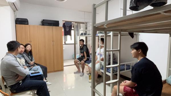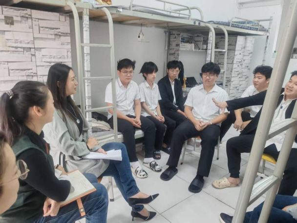 走访组深入宿舍楼栋,真正把办公地点搬到学生中间。学院领导与辅导员现场介绍学生整体情况与关注重点,学校学生处、就业办、武装部等部门负责人结合各自职能,主动询问同学们在学业发展、生涯规划、入伍政策、校园文化、日常管理等方面的实际需求与建议。通过“校—院”协同、多支力量并联下沉,不仅让学校职能部门直观、具体地了解学生动态,也为快速响应和解决跨部门问题搭建了实时沟通平台,实现育人资源精准投送、服务关口有效前移。