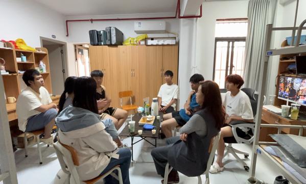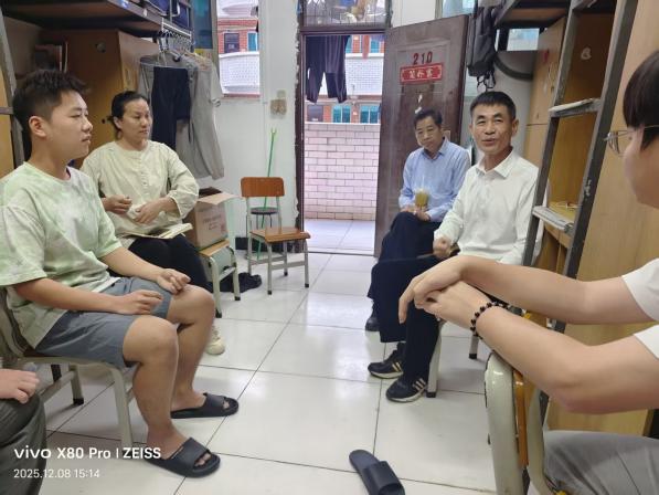 在宿舍轻松亲切的氛围中,师生促膝而坐,展开真诚而开放的对话。学校党委副书记潘高子、副校长陈桄平、副校长刘骞围绕思想引领、学业发展、职业规划、生活服务、安全教育等话题,悉心听取同学们的意见与困惑,并现场给予回应和指导。这种打破身份隔阂、融入生活场景的交流,拉近了师生心与心的距离,也让同学们真切感受到学校的关怀与温暖,成为一堂“围绕学生、关照学生、服务学生”的生动实践课。