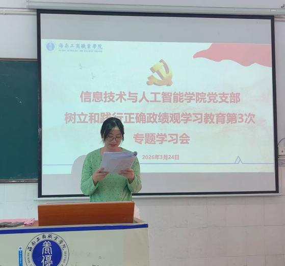 3月24日上午,信息技术与人工智能学院党支部在教一五楼508室召开树立和践行正确政绩观学习教育第3次专题学习会。会议由党支部书记王鹏程主持,全体党员参加。